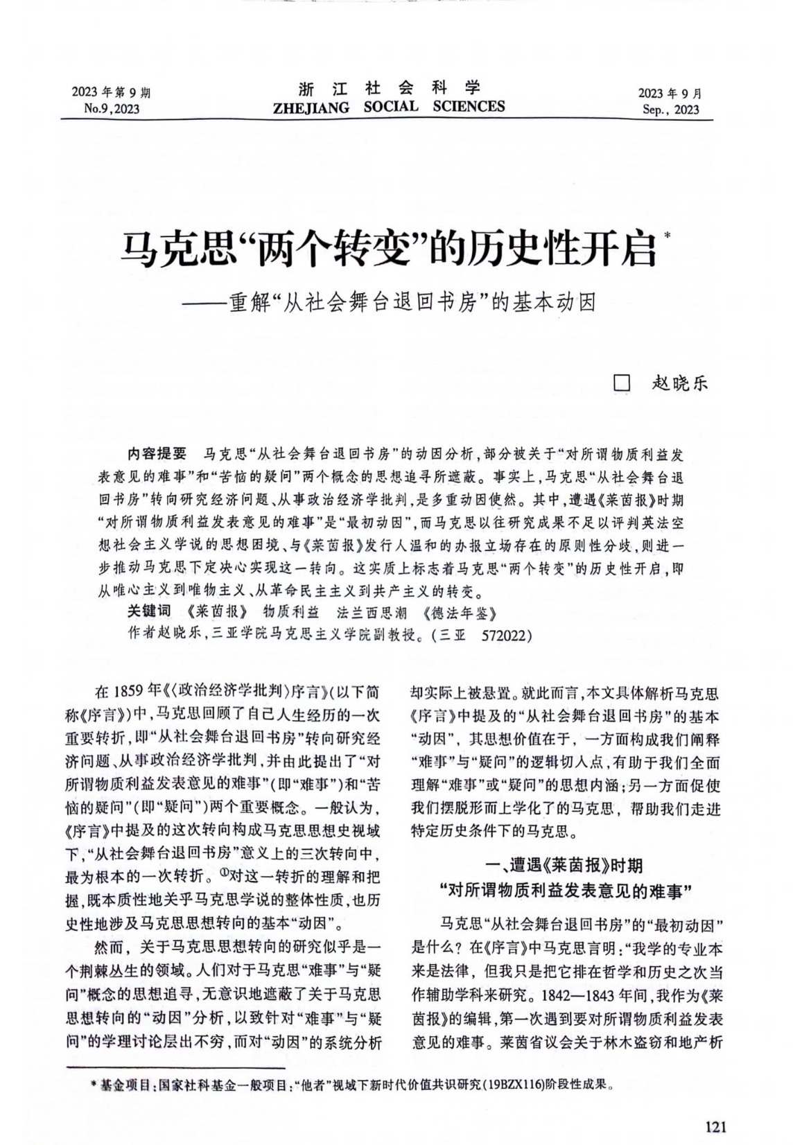 趙曉樂:深耕馬克思主義理論研究,解碼思想轉(zhuǎn)變核心動因