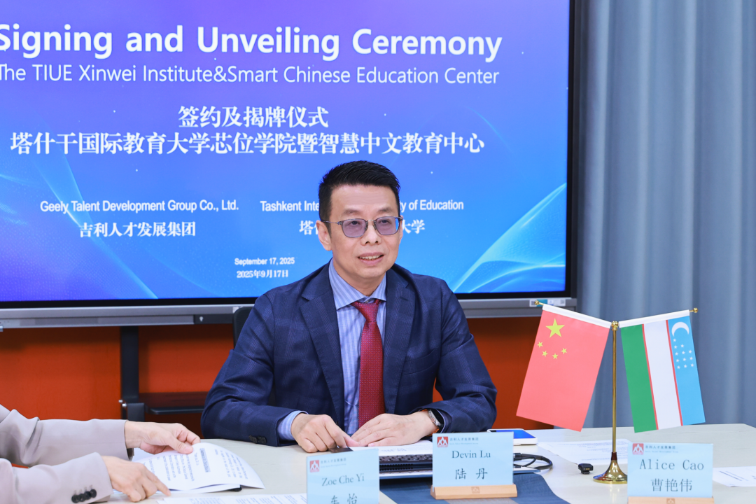 2025年9月17日,吉利人才發(fā)展集團攜手芯位教育與塔什干國際教育大學(xué)以線上線下融合方式,舉行了“芯位學(xué)院”及“智慧中文教育中心”的揭牌與簽約儀式。這是繼今年6月與烏茲別克斯坦納沃依國立大學(xué)成功合作后,“芯位學(xué)院”在烏茲別克斯坦的又一次重要布局,它不僅意味著吉利“三個校園”這一教育新模式在中亞地區(qū)獲得了積極的響應(yīng)與協(xié)同推進,更體現(xiàn)了雙方在人工智能時代背景下,對教育領(lǐng)域無限發(fā)展?jié)摿Φ纳羁陶J同與攜手共進的堅定決心。
