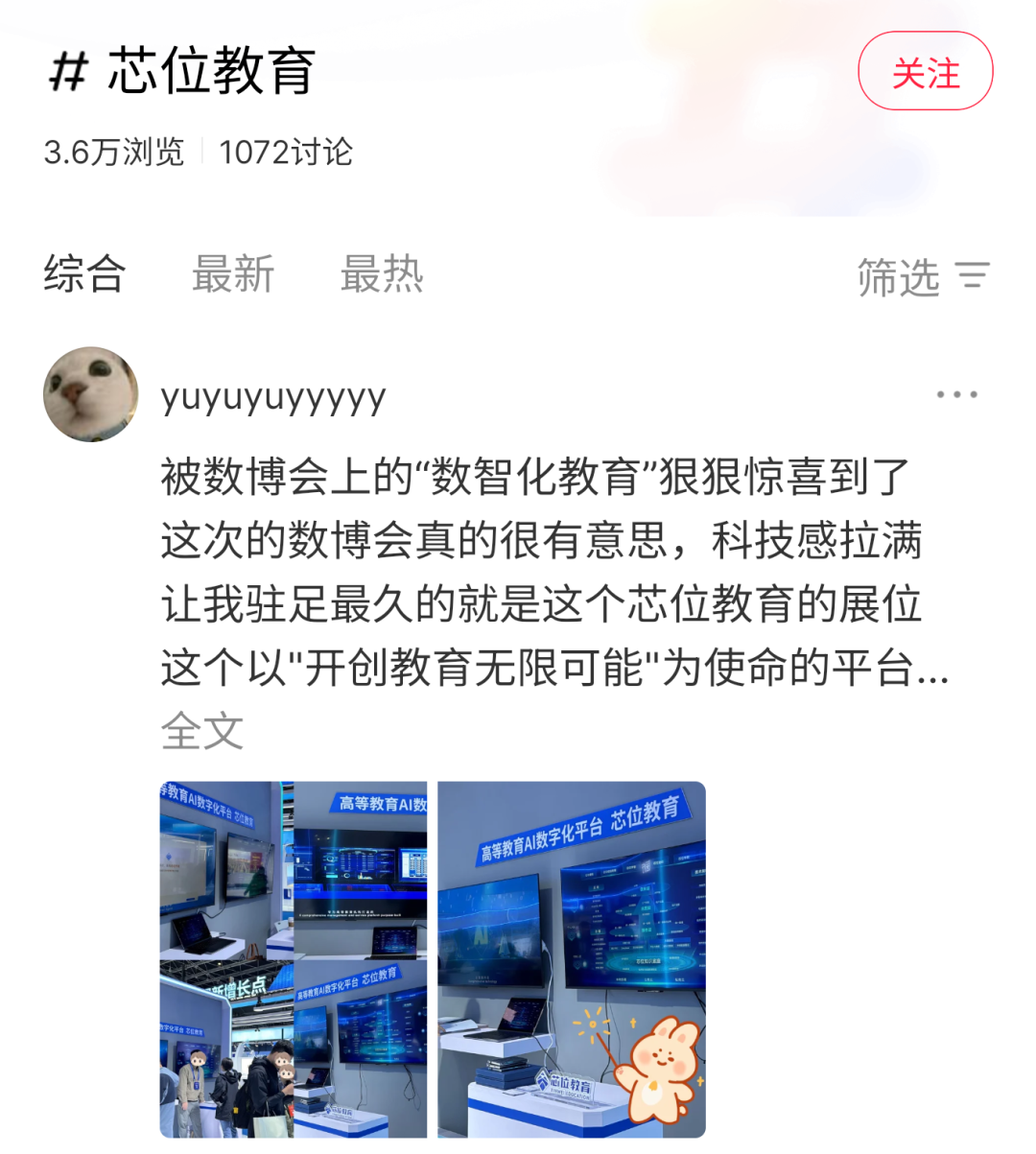 除媒體報(bào)道外,芯位教育展臺(tái)還成為了打卡點(diǎn),引起現(xiàn)場(chǎng)觀展的高校學(xué)子熱議。學(xué)生們?cè)诙兑?、小紅書等平臺(tái)主動(dòng)創(chuàng)作并分享了與芯位教育相關(guān)的圖文、視頻。