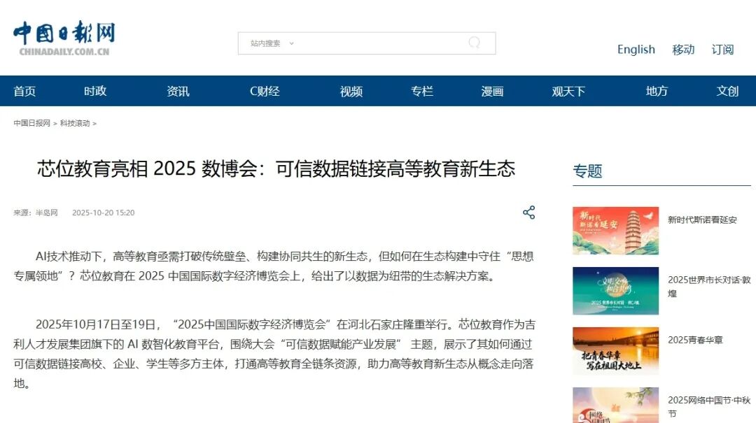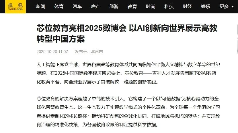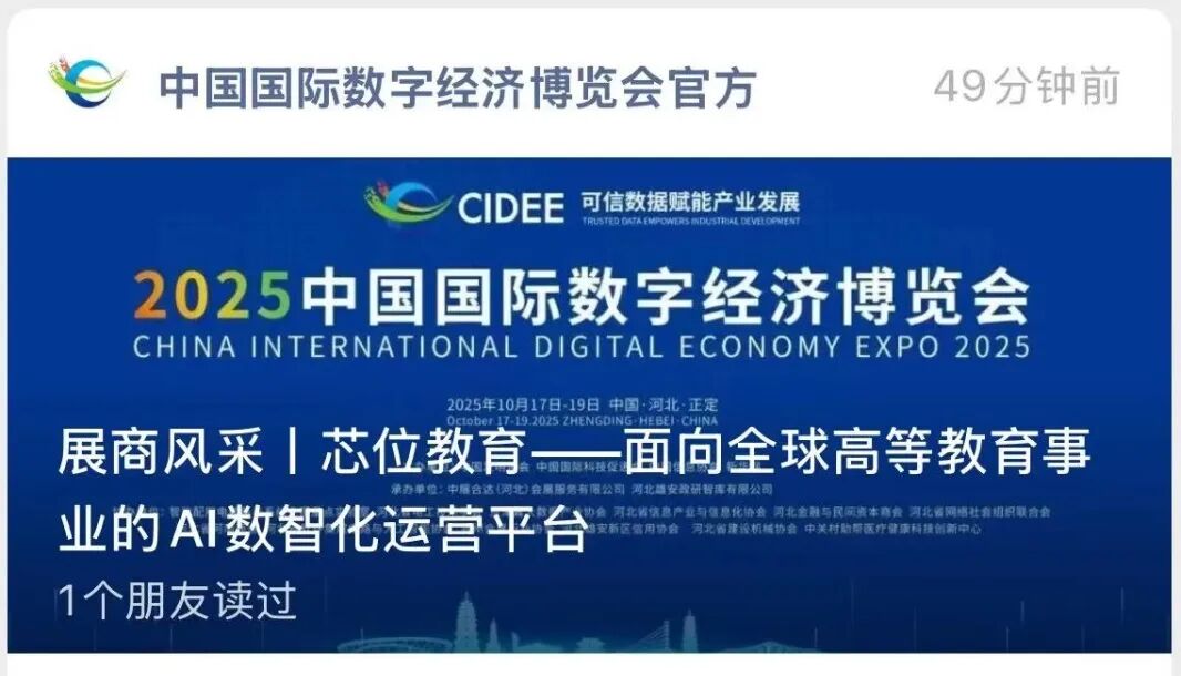 近日,芯位教育在2025中國(guó)國(guó)際數(shù)字經(jīng)濟(jì)博覽會(huì)上備受矚目。芯位教育作為參展企業(yè)之一,在這一場(chǎng)數(shù)字經(jīng)濟(jì)盛會(huì)上展示了前沿技術(shù)與教育領(lǐng)域融合的創(chuàng)新成果,引行業(yè)及媒體的高度關(guān)注。