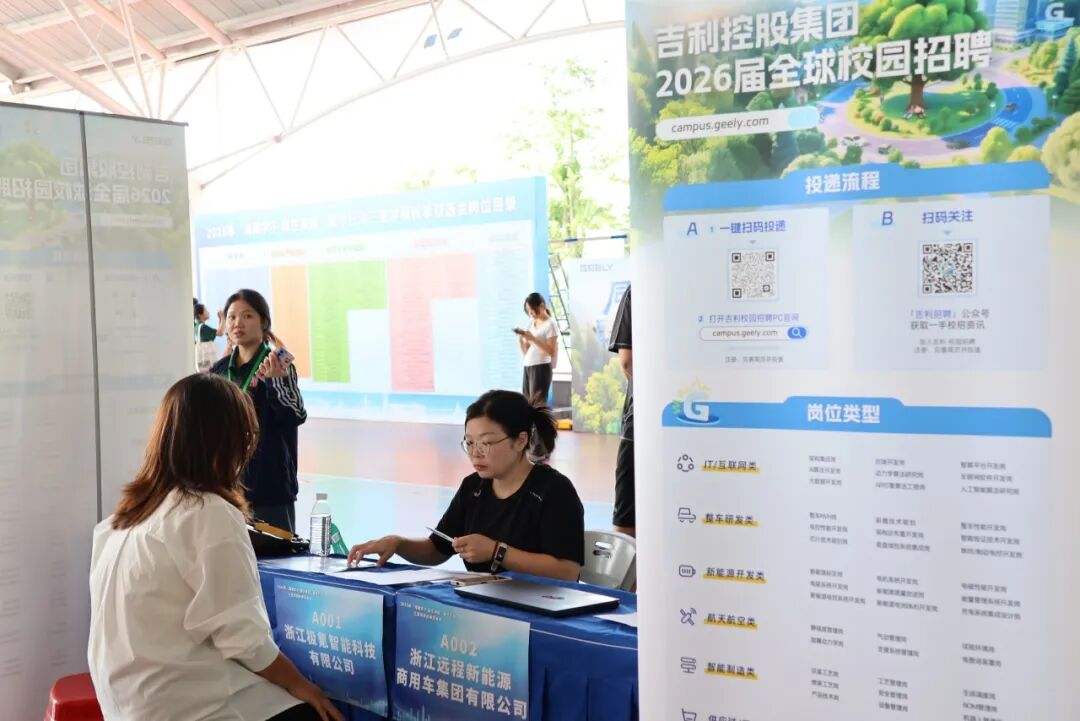 吉利控股集團(tuán)校企合作經(jīng)理甘曉霞:今天很多學(xué)生主動(dòng)咨詢和投遞簡(jiǎn)歷,我?guī)е膷徫缓驼\(chéng)意,歡迎年輕學(xué)子們加入,成為吉利新一屆的大雁,與吉利共成長(zhǎng)。